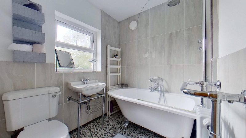The bathroom on this level is finished with a distinctive claw-foot bath and vintage-style fittings, adding character without feeling overly styled.