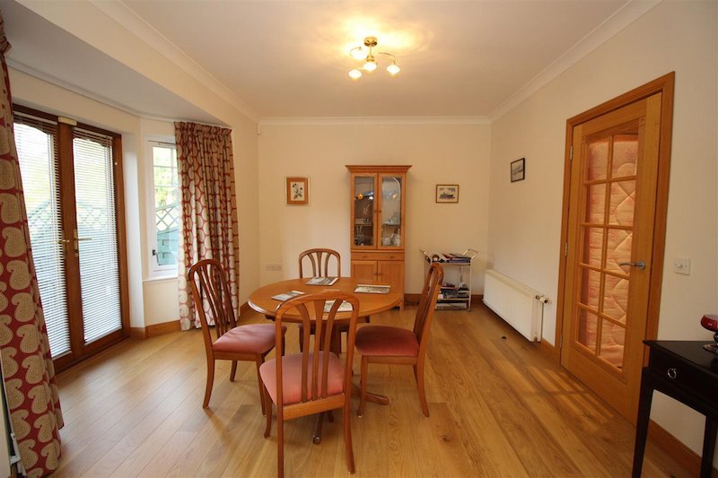 The dining area and kitchen sit together to the rear, opening out towards the garden and patio, where the indoors and outdoors feel naturally linked.