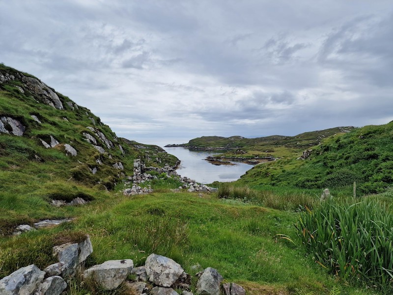 The croft itself sits in an enviable position, with open views across Loch Finsbay and towards the sea beyond.