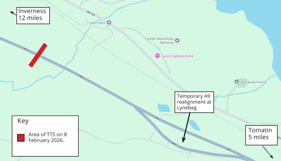 Drivers using the A9 are being advised to expect short delays on Sunday 8 February 2026 as temporary traffic signals are put in place to allow essential overhead cable works to be carried out safely.