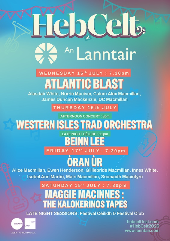 An Lanntair has revealed a packed programme of live music and family focused events to coincide with this summer’s HebCelt Festival in Stornoway.
