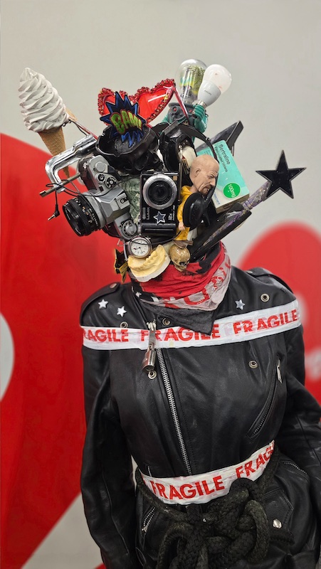 His mannequin, entitled ‘The Busy Mind’, depicts a figure bound by tape emblazoned with the word ‘fragile’ and a head made up of a diverse range of household and other items.