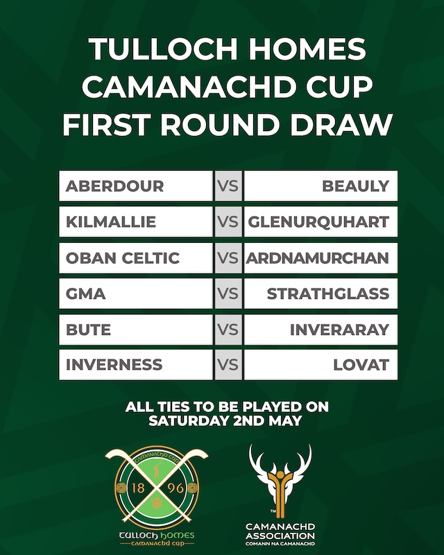 The 1st round ties, scheduled for 2nd of May, will see Aberdour face Beauly, Kilmallie take on Glenurquhart, Oban Celtic meet Ardnamurchan, Glasgow Mid Argyll play Strathglass, Bute host Inveraray and Inverness take on Lovat.
