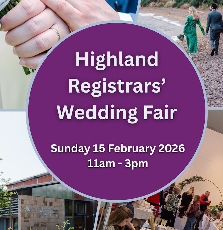 Suppliers can book a table at the Highland Registrars’ Wedding Fair by emailing: registration@highland.gov.uk