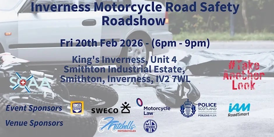 The roadshow brings together voices from across the motorcycling and road safety community, including Motorcycle Law Scotland, Police Scotland Road Policing, the Scottish Fire and Rescue Service, advanced rider trainers, and road safety professionals.