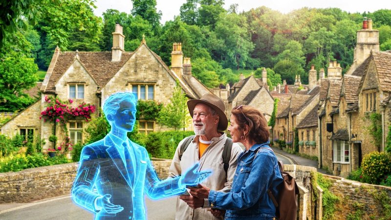 Destination UK looks at a climate altered world in which rural and coastal Britain become sought after holiday destinations, complete with artificial lakes, inland beaches, three dimensional avatar tour guides and seamless translation powered by artificial intelligence.
