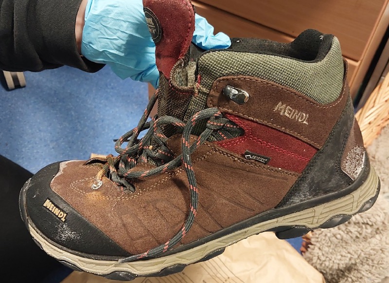 The Meindl boot, a UK size 8.5, was sold by only two retailers in the UK and has since been discontinued, raising hopes that someone may recognise it and help give the woman her name back.