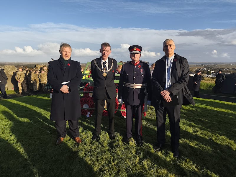 In Stornoway, Convener of Comhairle nan Eilean Siar, Councillor Kenny Macleod, joined Iain Macaulay, Lord Lieutenant of the Western Isles, alongside armed forces representatives, veterans, and local organisations for a solemn service at the Lewis War Memorial.